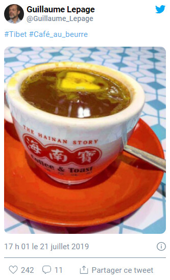 « L’idée m’est venue spontanément, un peu comme la pomme de Newton, il y a deux ans, alors que j’étais en vacances dans les contreforts du Tibet. » C’est là que j’ai bu pour la première fois leur spécialité nationale, le café au beurre. Les habitants croient que cette boisson donne de la force et de l’énergie.